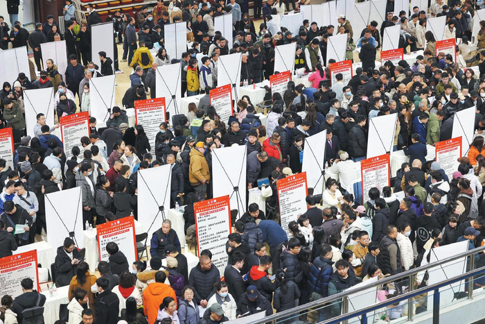3月16日,北京市房山区2026年春风行动暨就业援助季——服务燕山石化转型发展专场招聘会在良乡体育中心训练馆举办。这场招聘会,不只是岗位的对接,更是一个集成了多维服务的“求职便民全能站”。社会保险、劳动用工、职业指导、反诈宣传、住房公积金……政策综合服务圈让求职者“一站式”解决后顾之忧。 新京报记者 王贵彬 耿子叶 摄影报道