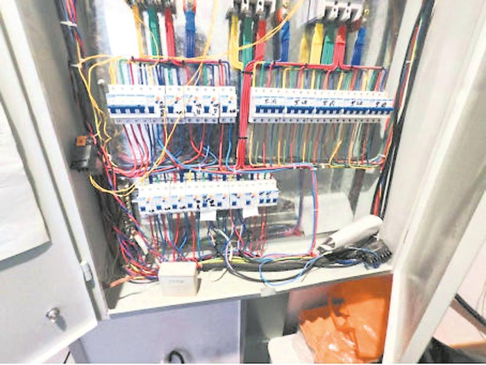 在新都区新昊网鱼网络有限公司(网鱼电竞新都苏宁广场店)的机房,暗访组打开配电箱,发现消防模块被违规安装在里面,专家当即说道:“《火灾自动报警系统设计规范》明确规定,模块严禁设置在配电箱内,这样不仅容易损坏模块,还会影响消防联动触发,必须立即整改。”
