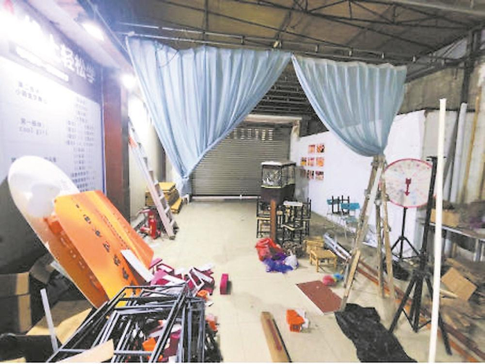 新都区舞角鑫艺术培训学校(桂湖星禾艺术学院)的安全出口被卷帘门遮挡,专家现场指出:“人员密集场所的安全出口,绝对不能被遮挡,卷帘门一旦打不开,里面的人就被困住了。”