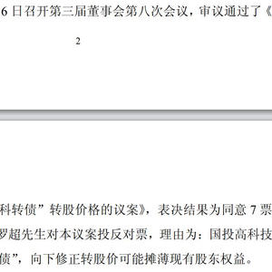 公告显示,罗超投下反对票的理由为:国投高科不持有“瑞科转债”,向下修正转股价可能摊薄现有股东权益。