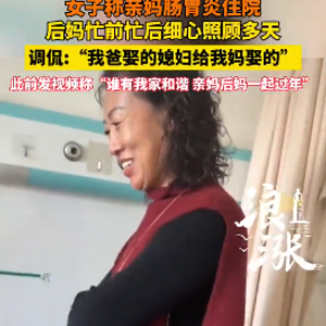 据发布视频的女儿贾女士介绍,亲妈因肠胃炎住院了,自己因为上班没时间照顾,后妈就带亲妈去看病,还在医院照顾了好几天