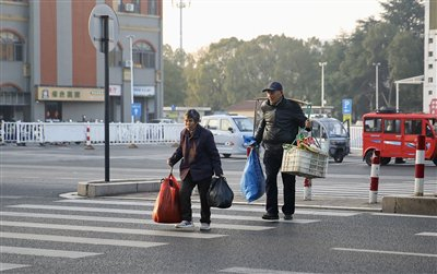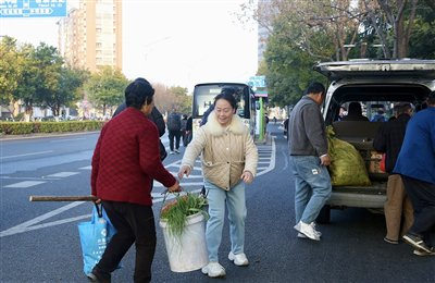 清晨的湖城,太阳刚从地平线缓缓升起,薄雾尚未完全散去,空气里还有一丝丝寒气。近日,一辆从南浔区千金镇始发的公交车在终点站停下,挑着菜担、拎着菜篮的菜农陆续下车,快步走向早已等候在旁的一辆面包车。面包车司机宋庆来是吴兴区鸿泊湾菜场负责人,也是这些菜农到城里卖菜的“摆渡人”。