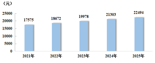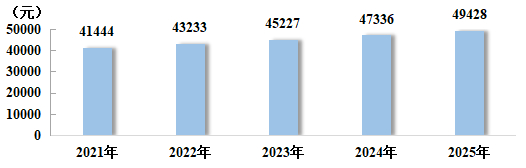 图10:2021~2025年城镇居民人均可支配收入