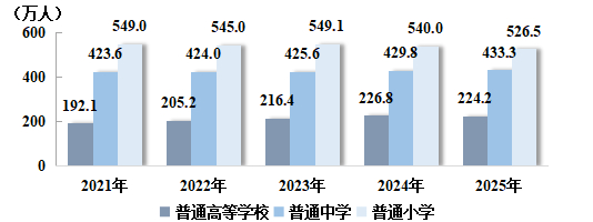 图7:2021~2025年各类学校在校学生数