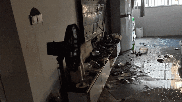 2025年10月,江西赣州刘女士家中突然起火,邻居发现后立即拨打119报警,消防员到场成功将火扑灭。火灾造成电视机、电视柜烧毁,客厅一片狼藉。