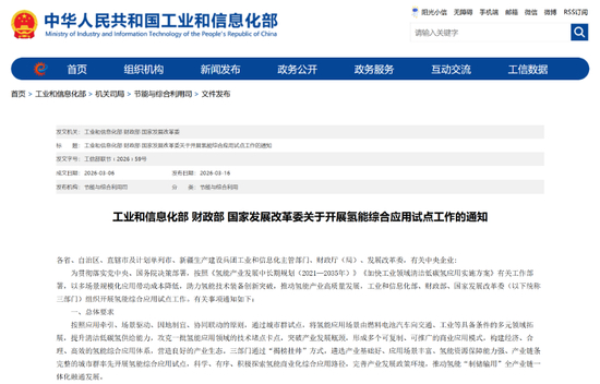 3月16日,工信部、财政部、国家发改委印发《关于开展氢能综合应用试点工作的通知》(以下简称《通知》)。