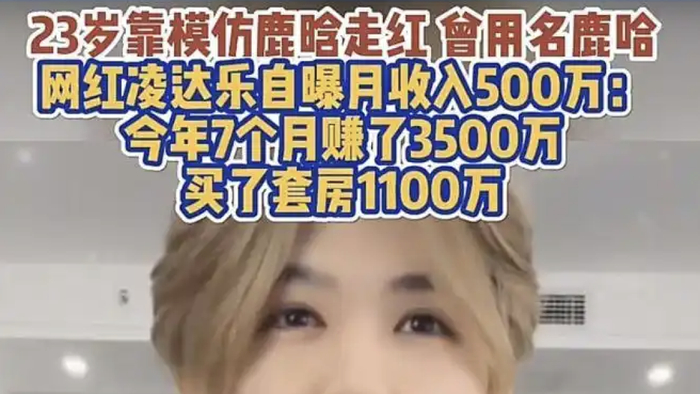 公开资料显示,凌达乐曾用艺名“鹿哈”,早期以“爱笑的凌达乐”为网名尝试颜值主播路线,后通过模仿鹿晗的妆容发型走红,是山寨男团ESO的前成员,该组合成员还包括“王二博”“易烊干洗”“黄子诚”等人,均通过模仿EXO、TFBOYS等组合艺人获取流量。