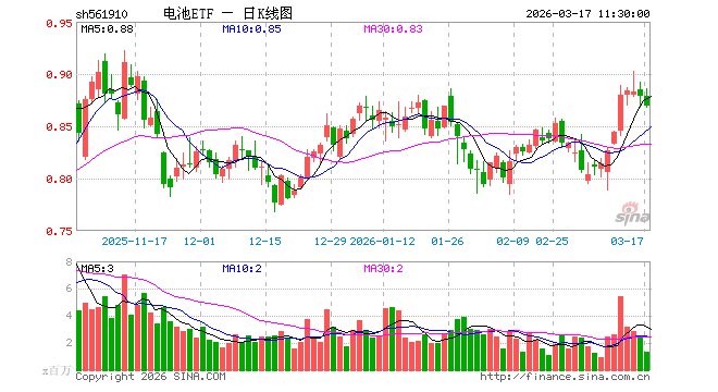 电池ETF(561910)跌1.14%,半日成交额1.18亿元