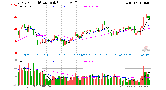 新能源ETF华安(516270)跌0.94%,半日成交额807.83万元