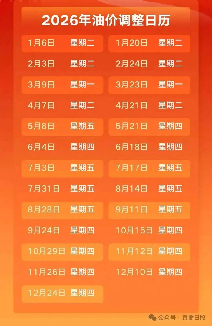 本年度油价调整日历