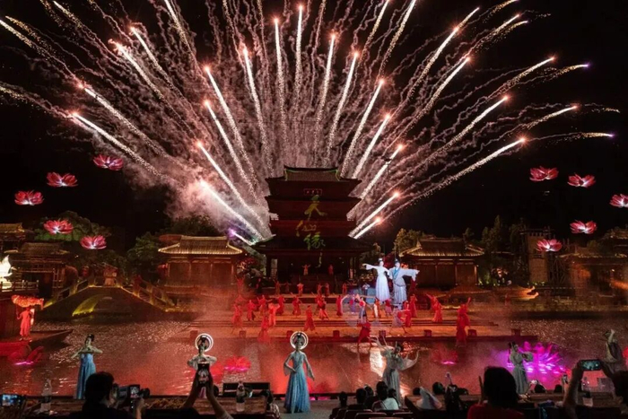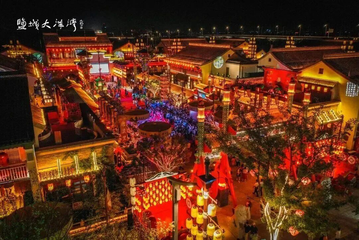 初春的风拂过大洋湾,樱花即将缀满枝头。唐风建筑在花影里静静铺展,青砖黛瓦间,歌舞翩然上演,渎里风华穿越千年扑面而来。待到夜幕降临,《盐渎往事》在水光夜色中拉开大幕,沉浸式的演绎让那些关于盐与城的记忆,在光影里重新活了过来。