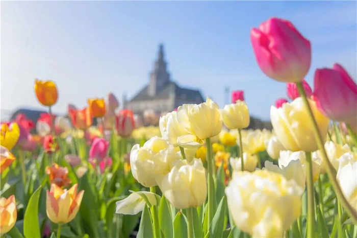 荷兰花海的风车下郁金香铺成彩色的海,这里不只是花的海洋,更是研学的课堂——辨认一朵花的形态,品尝花间美食,在花海里奔跑嬉戏,让花香沾满衣角。
