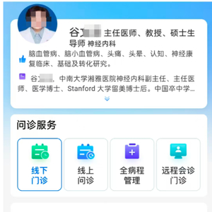 17日,上游新闻记者注意到,中南大学湘雅医院小程序预约挂号系统显示,该院神经内科副主任、主任医师谷某某已停诊。