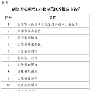 关于公布创建国家新型工业化示范区首批城市名单的通知