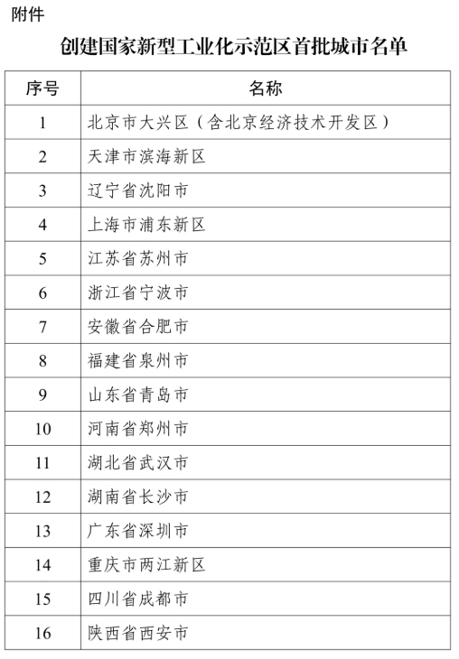 16个上榜!工信部公布创建国家新型工业化示范区首批城市名单