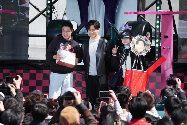 F1中国大奖赛前夕,周冠宇(中)代表凯迪拉克车队与车迷互动 东方IC