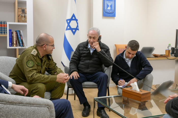 以色列总理办公室17日在社交媒体上说,以总理内塔尼亚胡下令“消灭”伊朗政府高级官员。帖文发布了他与军方人士一起打电话的图片。