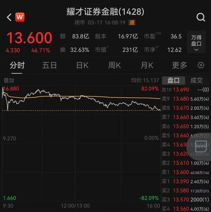 【导读】耀才证券金融盘中“飙涨”82%,中资券商股走高