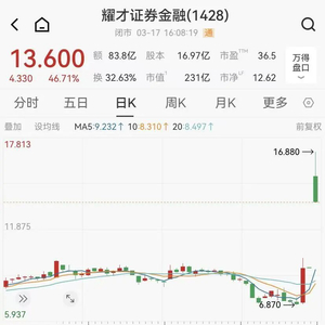 值得注意的是, 3月17日,耀才证券金融港股盘中一度涨超82%,最高报9.95港元,创近4个月新高。回顾>>
