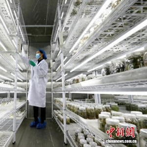 3月17日,青海大学农林科学院生物技术研究所,工作人员正在马铃薯基因库检查组培苗。在该学院建立的马铃薯基因库目前保存有栽培种、地方品种、野生种及创制新种质等遗传资源1200余份,建立了多重保存体系,是中国西北地区规模最大的马铃薯基因库。中新社记者 张忠苹 摄