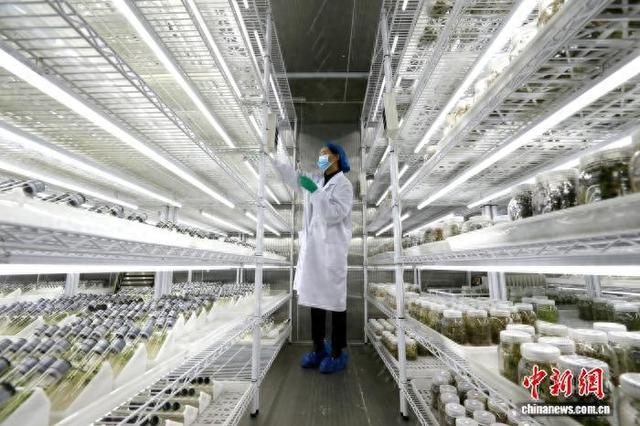 3月17日,青海大学农林科学院生物技术研究所,工作人员正在马铃薯基因库检查组培苗。中新社记者 张忠苹 摄