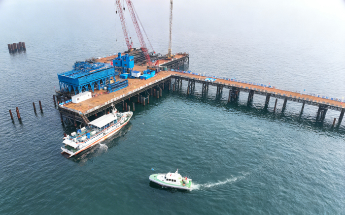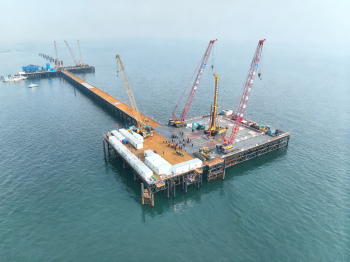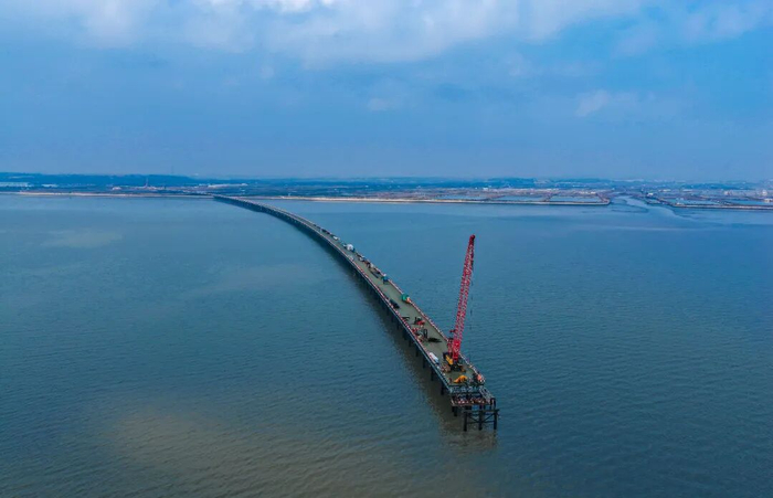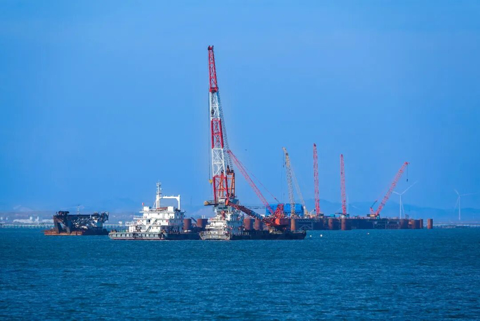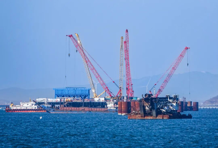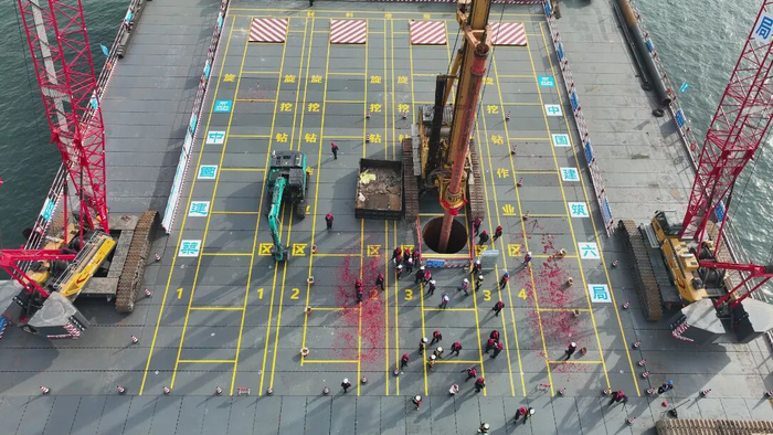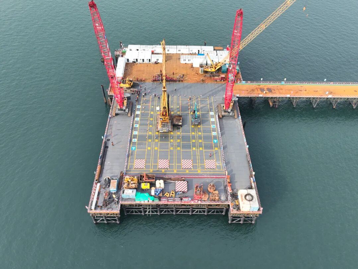 项目施工正式由海上钢平台搭设阶段,转入核心关键、施工难度最大的下部结构施工阶段,为后续主桥塔桩基施工、整体工程推进奠定了坚实基础。