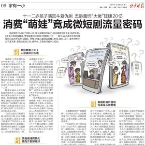 地府里的“小阎王”来到人间,智斗欲篡位的皇子,惩治渣男与假千金;饥荒年里,5岁孩子因会说兽语,带领全家过上吃穿不愁的好日子……如今,以儿童为主角的微短剧已成为市场热门品类。然而,大量儿童微短剧融入甜宠、复仇、宫斗、金手指等少儿不宜元素,暴露出的成人化、娱乐化、工具化问题令人担忧。