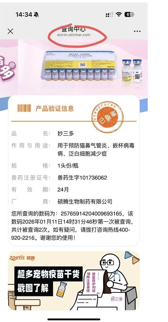 “此外,疫苗接种本身是一项严谨的临床医疗行为,宠物主人通常不具备规范注射与应急处置的专业能力。”该负责人提醒称,建议消费者选择正规宠物医院进行接种并扫码验真:这不仅有助于确保疫苗来源正规、冷链合规与接种规范,也能在发生不良反应时第一时间获得执业兽医的专业评估与救助。