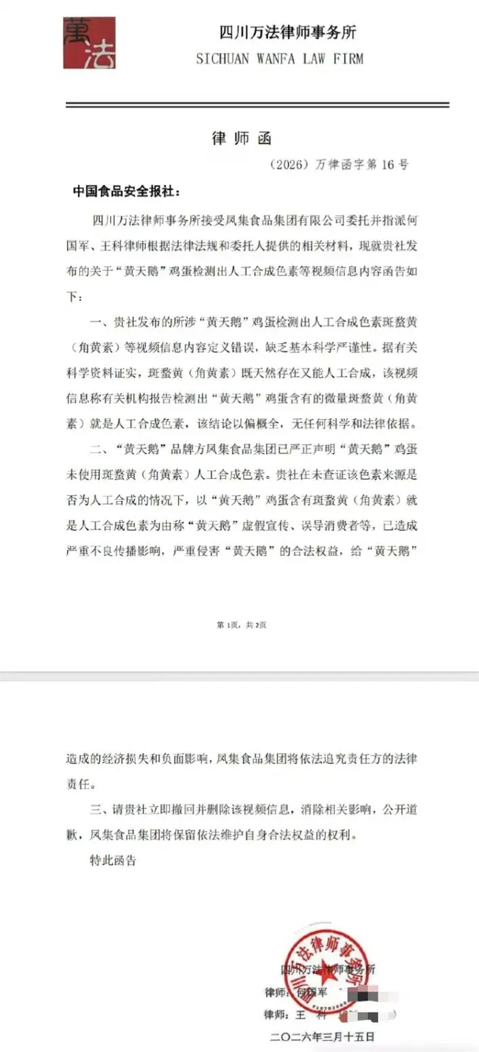 于是,黄天鹅于3月16日选择“硬刚”,它向某报社提出三点质疑并发出律师函,表示有关视频、文章已造成严重不良传播影响,严重侵害“黄天鹅”的合法权益,将依法追究相关责任人的法律责任。
