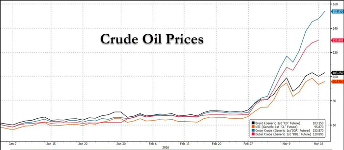 与此同时,阿曼原油期货周二触及了每桶152.58美元的历史新高,其对迪拜掉期价格的溢价设定在每桶55.74美元,而2月份平均溢价仅为75美分。阿曼原油从霍尔木兹海峡外的一个终端出口。