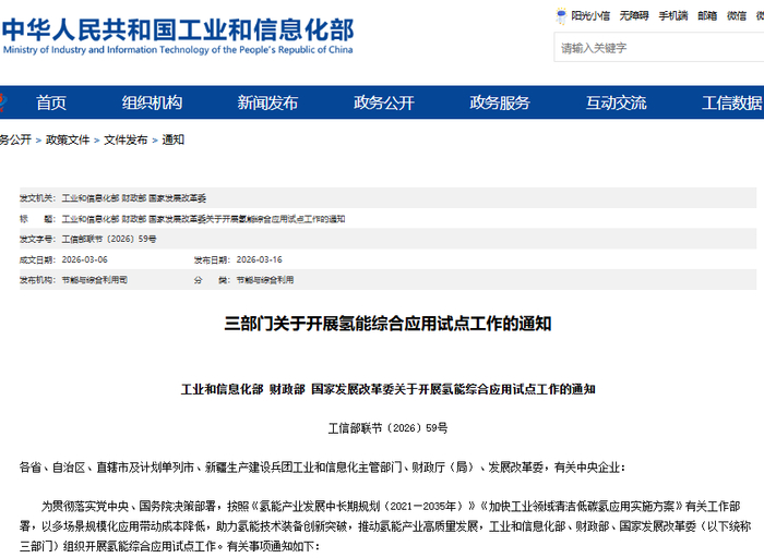 三部门联合部署氢能综合应用试点