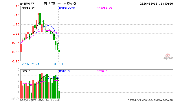 有色金属ETF天弘(159157)跌1.21%,半日成交额1.14亿元