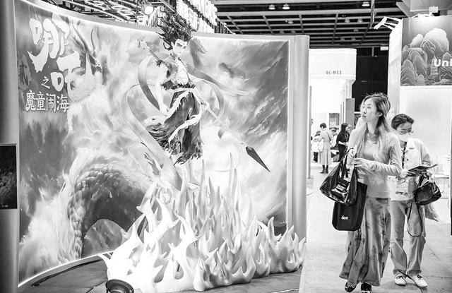 17日,第30届香港国际影视展及亚洲影视娱乐论坛在香港会议展览中心开幕,活动汇集环球影视业界代表,展示最新作品及技术。图为参展电影《哪吒2》的角色展示。 (视觉中国)