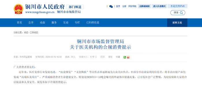 陕西省铜川市市场监督管理局关于医美机构的合规消费提示