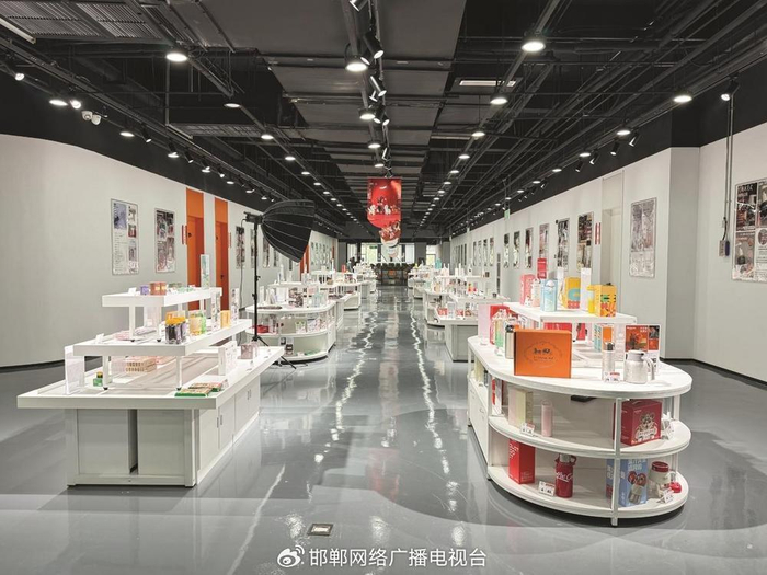 走进占地4300平方米的“一品一播”电商直播基地选品中心,质感精致的珐琅锅、金黄饱满的武安小米以及各种非遗产品整齐陈列。