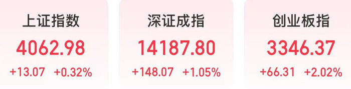 今天A股反弹。截至收盘,上证指数上涨0.32%,深证成指上涨1.05%,创业板指上涨2.02%,科创综指上涨1.77%。
