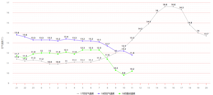 冷空气和降水的双重影响之下,今天白天杭州气温几乎没有上升空间,甚至还略有下跌。但由于冷空气势力不强,不会出现冬季那样明显的气温倒置现象。