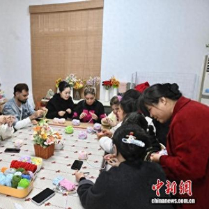 3月18日,安徽省合肥市瑶海社区“浍爱编织坊”内,多名外国留学生通过体验手工编织,感受“指尖技艺”的魅力。图为留学生在学习手工编织。中新社记者 韩苏原 摄