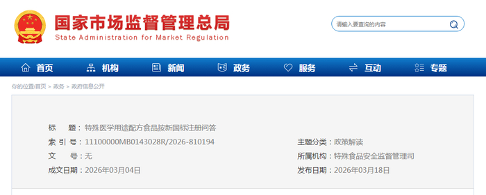 特殊医学用途配方食品按新国标注册问答