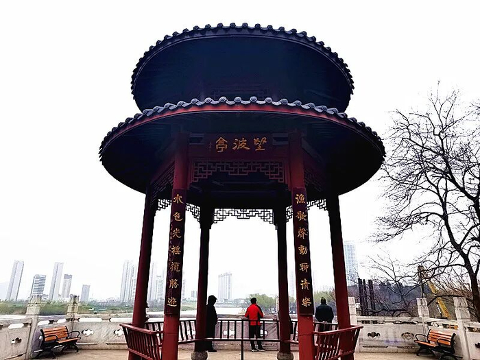 站在颍河风景带的望波亭远眺,水面开阔坦荡,微风拂过泛起层层涟漪。这里正是古“颍州八景”之一的“新渡波光”所在地。