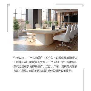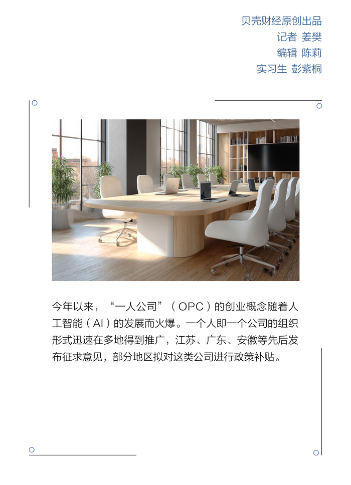 今年以来,“一人公司”(OPC)的创业概念随着人工智能(AI)的发展而火爆。一个人即一个公司的组织形式迅速在多地得到推广,江苏、广东、安徽等先后发布征求意见,部分地区拟对这类公司进行政策补贴。