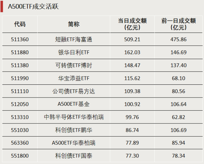 A500ETF成交活跃