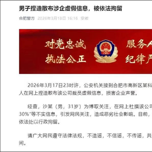 17日23时许,公安机关接到合肥市高新区某科技公司报案,称有人在网上捏造散布该公司裁员虚假信息,损害企业声誉。