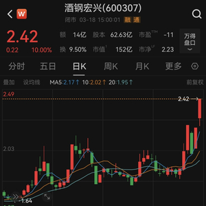 截至3月18日收盘,酒钢宏兴股价报2.42元,全天成交额高达14.03亿元,换手率达到9.50%。这一长期被市场遗忘的西北钢铁巨头,目前已成功摆脱“1元股”行列,总市值则站上了150亿元大关。