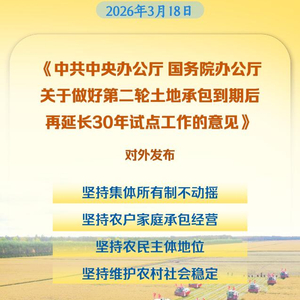 3月18日,《中共中央办公厅 国务院办公厅关于做好第二轮土地承包到期后再延长30年试点工作的意见》对外发布,对第二轮土地承包到期后再延长30年试点工作(以下简称延包试点)作出具体部署。