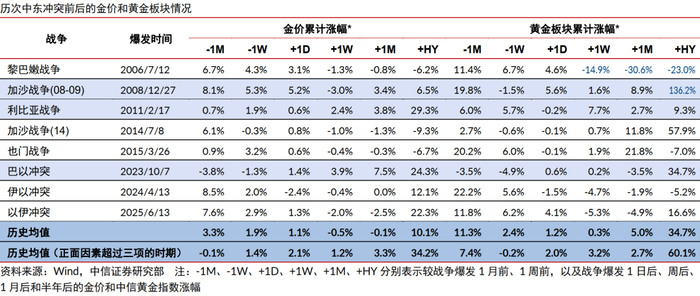 中信证券:历次中东冲突后的金价和黄金板块复盘,黄金板块有望再创新高