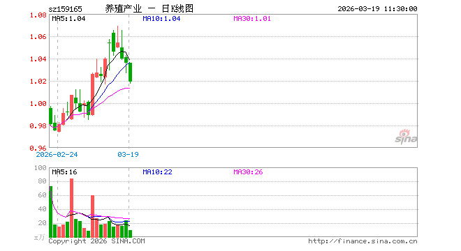 3月19日,截止午间收盘,养殖ETF永赢(159165)跌1.64%,报1.019元,成交额1024.44万元。养殖ETF永赢(159165)重仓股方面,牧原股份截止午盘跌1.67%,温氏股份跌1.15%,海大集团跌1.32%,正邦科技跌0.30%,梅花生物跌2.81%,新希望跌0.57%,生物股份跌7.79%,大北农跌0.72%,伊利股份跌0.04%,圣农发展跌1.15%。
