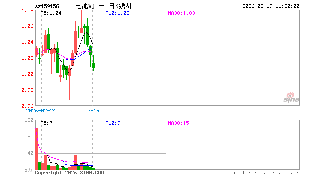 电池ETF万家(159156)跌1.56%,半日成交额254.76万元