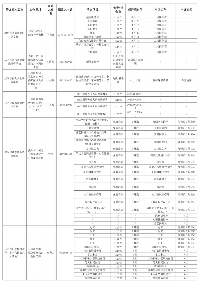 三河、燕郊找工作的看过来!2026首批技能培训计划发布,速报名!