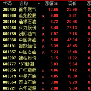 石油板块盘中强势拉升,截至收盘,首华燃气涨近14%,蓝焰控股涨停,通源石油、科力股份涨超8%,中国海油、中国石油均涨超5%。